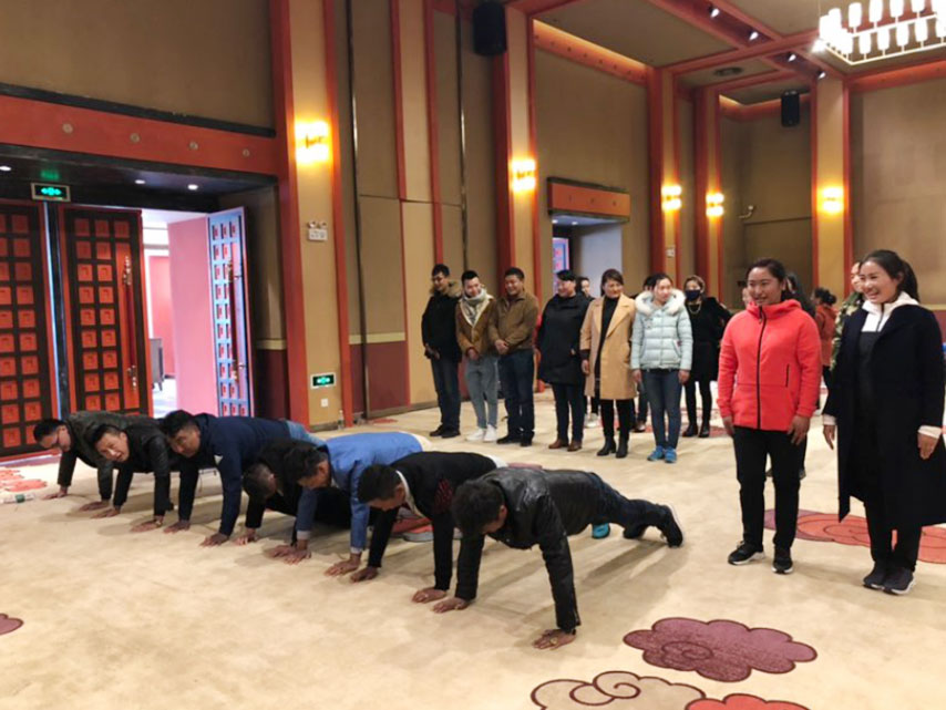 (圖為團(tuán)隊(duì)建設(shè)活動(dòng)中“受罰”)
