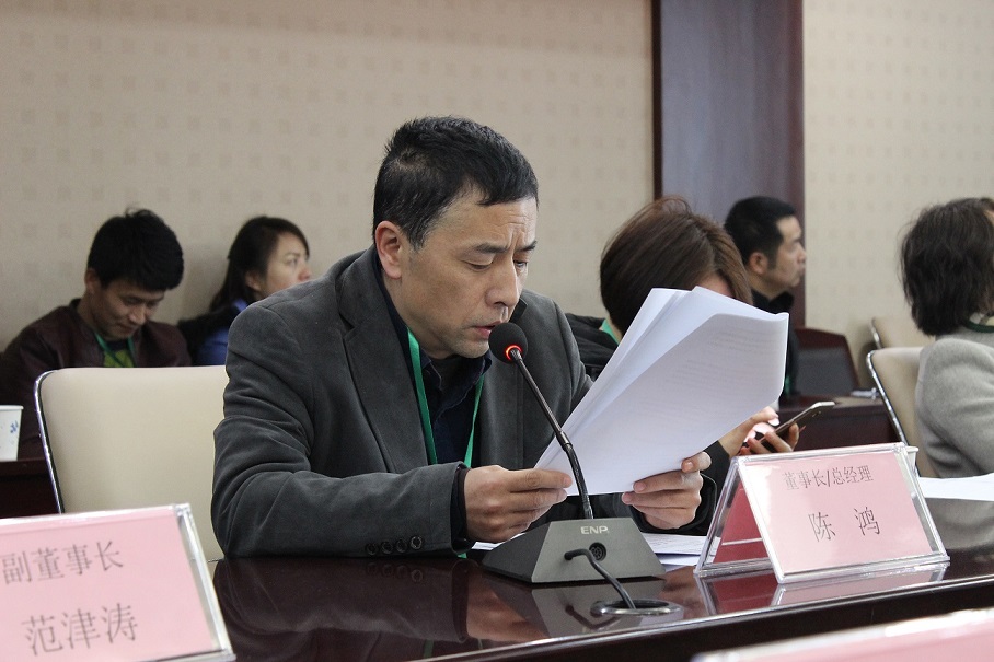 (圖為董事長兼總經(jīng)理陳鴻作董事會(huì)工作報(bào)告)