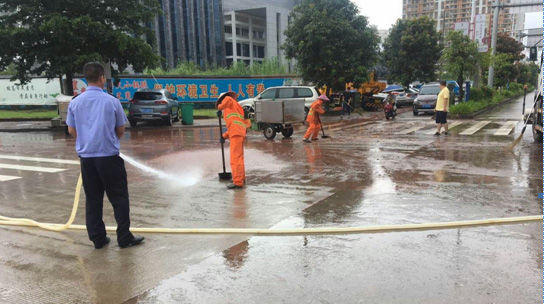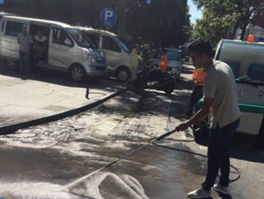 ▲對重點(diǎn)交易市場、政府廣場周邊清洗作業(yè)