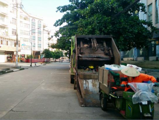 針對東興市國門城市的特點(diǎn),公司采用機(jī)械作業(yè)與人工作業(yè)相結(jié)合的模式。人工作業(yè)方面,城區(qū)每天早上8點(diǎn)鐘前,環(huán)衛(wèi)工人完成大掃,輪班保潔,直到晚上11點(diǎn)鐘。機(jī)械作業(yè)方面,公司采用高壓清洗車對東興市城西區(qū)域路段進(jìn)行清洗作業(yè),采用小掃路車對市區(qū)小街巷進(jìn)行清洗作業(yè),全天候人工與電動三輪車巡回保潔,管理人員用電瓶車進(jìn)行巡檢督查。垃圾清運(yùn)則采用壓縮式收集車巡回收集城區(qū)各路段垃圾,采用5臺勾臂車對城西各區(qū)域100多個垃圾箱中垃圾進(jìn)行轉(zhuǎn)運(yùn),垃圾壓縮車對全城的垃圾桶中垃圾進(jìn)行循環(huán)收集,保證全城垃圾不落地。新型模式下的環(huán)衛(wèi)作業(yè)有效地提升了東興市國門城市形象及環(huán)衛(wèi)作業(yè)管理水平,受到業(yè)主單位及主管單位好評。