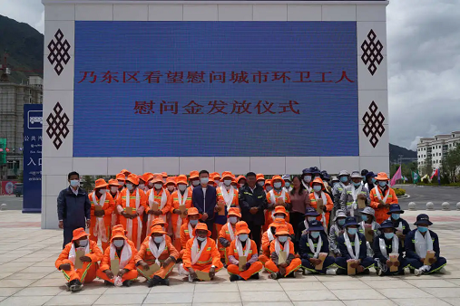 索朗平措向國(guó)策環(huán)保山南分公司一線環(huán)衛(wèi)工人們獻(xiàn)上了潔白的哈達(dá),送上了慰問(wèn)金,同時(shí)對(duì)他們?cè)诿恳惶?、每一個(gè)佳節(jié)的辛勤付出表示衷心感謝!他表示,希望大家繼續(xù)發(fā)揚(yáng)“寧可一人臟、換來(lái)萬(wàn)人潔”的環(huán)衛(wèi)精神,再接再厲,以更加優(yōu)美整潔的城市環(huán)境和優(yōu)異的工作業(yè)績(jī)回報(bào)社會(huì)各界的關(guān)心和厚愛(ài)。