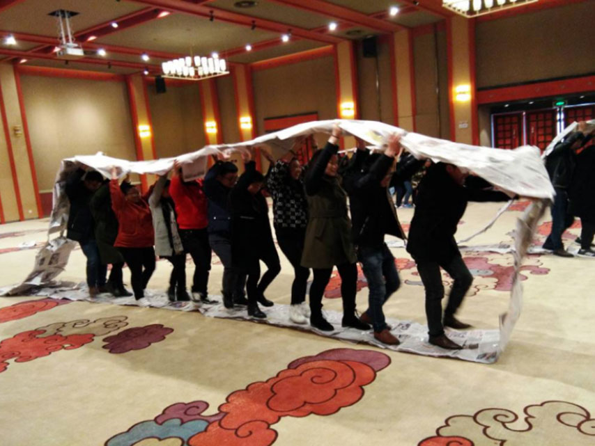 (圖為團(tuán)隊(duì)拓展活動(dòng)“齊眉棍”)