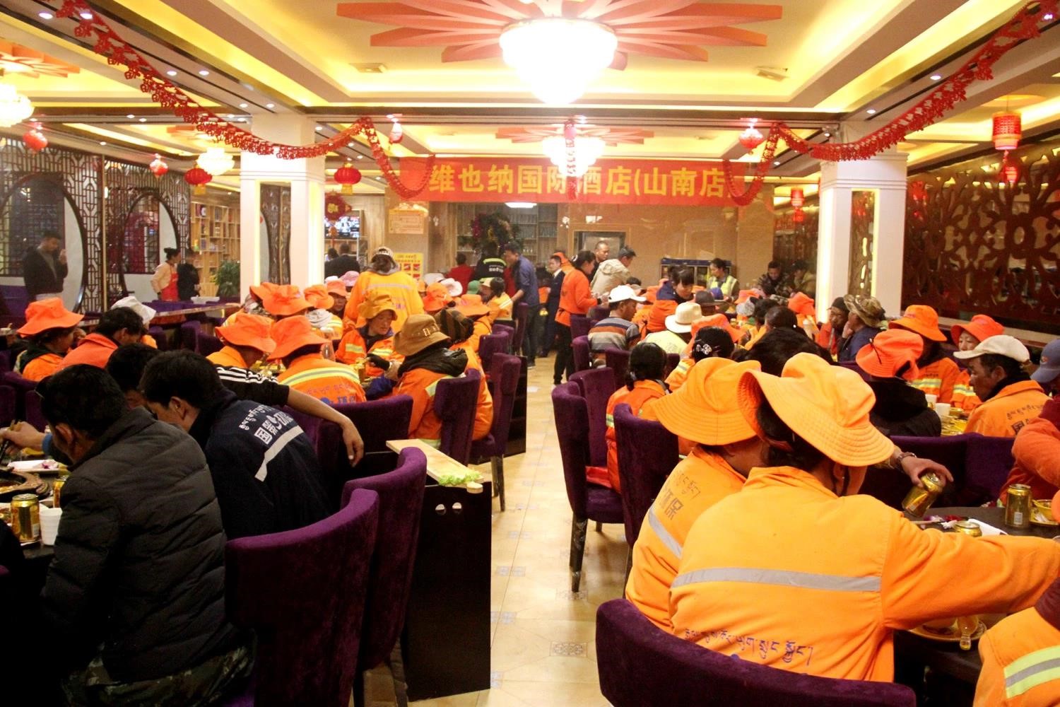 慰問活動(dòng)結(jié)束后,主辦方邀請所有環(huán)衛(wèi)工人同吃火鍋宴。秘制火鍋湯料,冒著熱氣兒,散著香味兒,開胃小菜,各種醬料,時(shí)鮮蔬菜,魚肉等豐盛的菜品讓“城市美容師”們吃的既暖胃,又暖心。