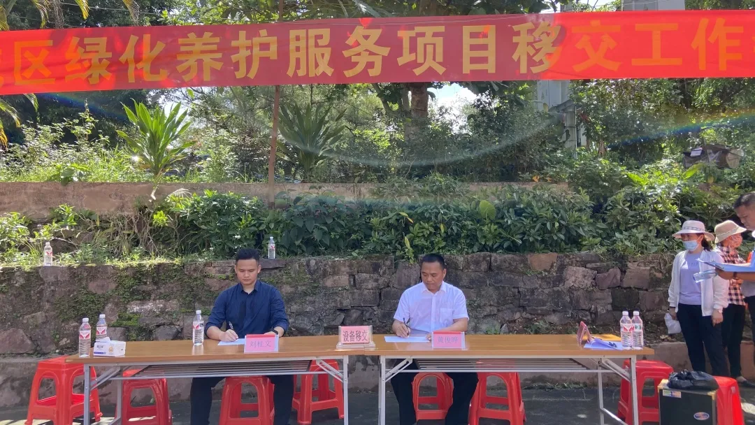 交接儀式上,東興市園林管理處與東興國(guó)策環(huán)保經(jīng)過(guò)確認(rèn)后簽署了交接確認(rèn)書。