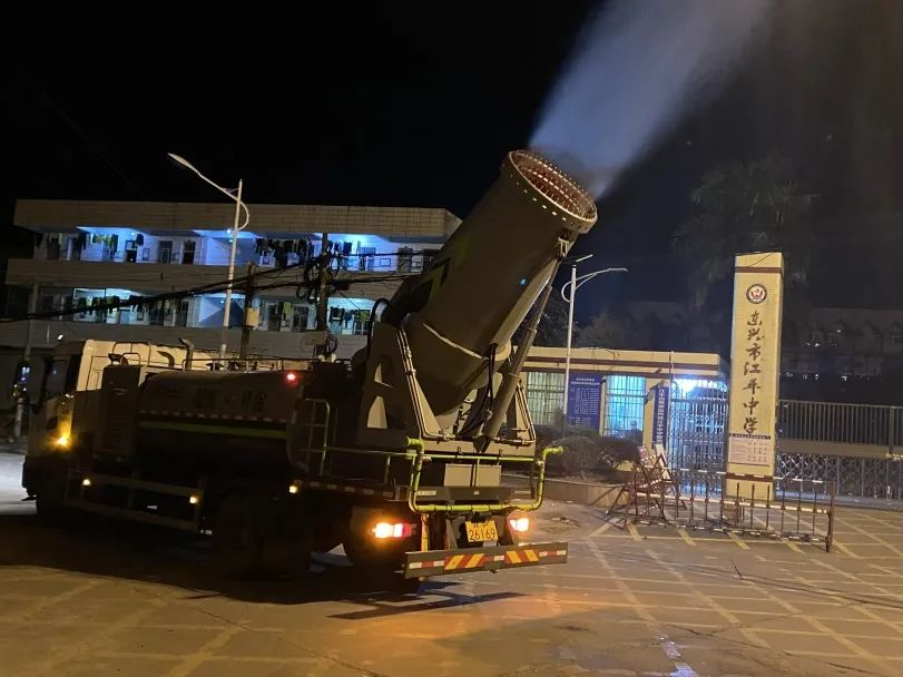 裝載完成后,車隊(duì)長(zhǎng)曾慶彪開(kāi)著裝滿消毒液的霧炮車對(duì)重點(diǎn)疫區(qū)江平鎮(zhèn)各主次干道、人流密集場(chǎng)所、重要點(diǎn)位進(jìn)行高炮霧化消毒,以增強(qiáng)街道消毒效果,最大限度減少病毒滋生蔓延,切實(shí)為市民提供一個(gè)安全、清潔的城市環(huán)境。