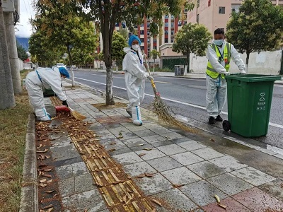 (國策環(huán)保林芝分公司工作人員對低風(fēng)險(xiǎn)區(qū)域進(jìn)行生活垃圾清運(yùn))