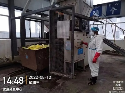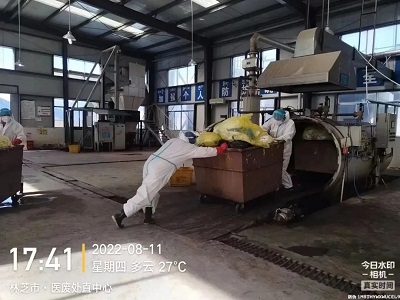 (國策環(huán)保林芝分公司工作人員對醫(yī)療廢物進(jìn)行安全處置)
