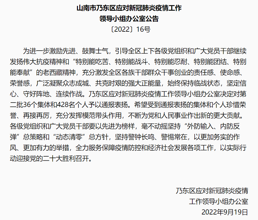 自山南市疫情發(fā)生以來,國策環(huán)保山南分公司積極響應(yīng)政府防疫要求,堅(jiān)守崗位,全力打好防疫“組合拳”,取得不俗成績。近日,在山南市乃東區(qū)應(yīng)對(duì)新冠肺炎疫情工作領(lǐng)導(dǎo)小組辦公室〔2022〕16號(hào)公告中,國策環(huán)保山南分公司被點(diǎn)名表揚(yáng)!