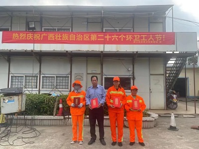 10月26日是廣西壯族自治區(qū)第26屆環(huán)衛(wèi)工人節(jié),國(guó)策環(huán)保防城港分公司唐輝、胡錫英、黃愛(ài)英、禤立艷、廖艷萍五名員工榮獲防城港城市管理監(jiān)督局“2022年環(huán)衛(wèi)先進(jìn)工作者”。防城港市委副書(shū)記、市長(zhǎng)黃江親自為他們頒發(fā)榮譽(yù)證書(shū),并對(duì)他們?yōu)榉莱歉凼兴龀龅呢暙I(xiàn)給予了肯定及鼓勵(lì)。